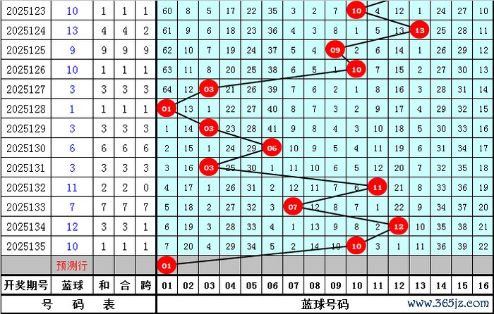 蓝球推选:第136期历史同时开奖中,蓝球开出频次永诀为:04、09、15出现0次,02、05、06、07、08、11、13、16出现1次,01、03、12、14出现2次,10出现3次,本年同时关心蓝球号码01。