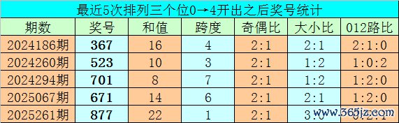 1、成列三前两期个位永别开出号码0和4,历史上个位号码伙同两期永别出现0和4时,共有88次。在最近5次出刻下,其下期永别出现号码:367、523、701、671、877;